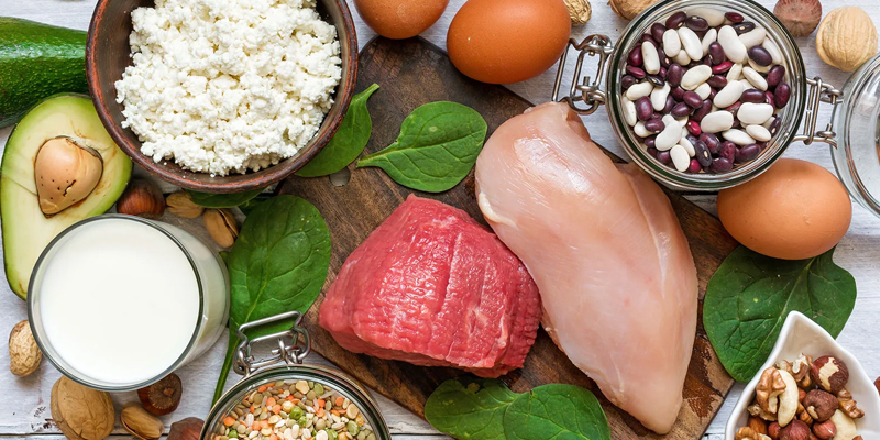 پروتئینها سلامت پوست، مو،ناخن،استخوان و عضلات را تضمین نموده و به کاهش وزن کمک میکنند. بر اساس نتایج تحقیقاتی که در سال ۲۰۰۵ در دانشگاه ایالتی آریزونا انجام گرفت مشخص گردید که پروتئینها با افزایش احساس سیری موجب کاهش دریافت کالری میشوند.بهعبارتدیگر، خوردن وعدههای غذایی غنی از پروتئین، بیشتر از وعدههای حاوی کربوهیدرات،احساس رضایت و سیری ایجاد کرده و با کاستن از کالری دریافتی موجب سوزاندن چربیهای بدن میشود.همچنین بر اساس همین تحقیقات، افرادی که تحت رژیم غذایی با پروتئین بالا هستند بهطور متوسط ۱۰ درصد (حدود ۲۰۰ کالری)کمتر از دیگران کالری دریافت میکنند.
