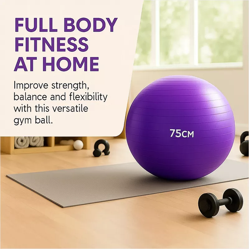 توپ ورزشی ایروبیک (پیلاتس، یوگا و …) جیم بال یکی از ابزارهای پرکاربرد در تمرینات خانگی و باشگاهی است که برای تقویت عضلات مرکزی بدن، بهبود تعادل، انعطافپذیری و ثبات حرکتی استفاده میشود. این توپ از جنس PVC ضخیم و مقاوم ساخته شده و دارای خاصیت ضد ترکخوردگی (Anti-Burst) است تا هنگام فشار یا استفاده سنگین ایمنی کامل حفظ شود. سطح آن به صورت شیاردار و ضد لغزش طراحی شده تا در حین تمرین، تعادل بدن بهتر کنترل شود. این محصول برای حرکات یوگا، پیلاتس، تمرینات توانبخشی و حتی بهعنوان صندلی ارگونومیک در محل کار قابل استفاده است و همراه با پمپ دستی عرضه میشود تا بهراحتی باد شود و آماده تمرین گردد.