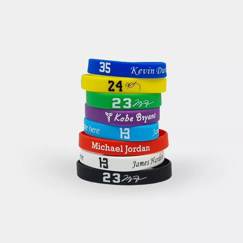 این دستبندهای رنگی و زیبا از جنس سیلیکون باکیفیت ساخته شدهاند و الهامگرفته از اسطورههای بسکتبال جهان هستند. بر روی هر دستبند شماره و نام بازیکنان معروفی همچون مایکل جردن (23)، کوبی برایانت (24)، کوین دورانت (35)، جیمز هاردن (13) و دیگر ستارگان نقش بسته است.
